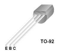 The transistor has three legs, the Collector (C), Base (B), and Emitter (E). Sometimes they are labeled on the flat side of the transistor. Transistors typically have one round side and one flat side. If the flat side is facing you, the Emitter leg is on the left, the Base leg is in the middle, and the Collector leg is on the right (note: some specialty transistors have different pin configurations than the TO-92 package described above).