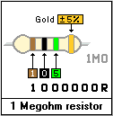 carbon film resistor example of 1 Megohm - 1,000,000 Ohms (shown on the left). We will