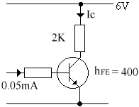 But Ic (saturation) = 6 / 2 = 3mA. The transistor is saturated.