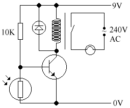 It can be used to enable transistors or IC circuits to switch on higher voltage or current components. For example, an automatic porch lamp: