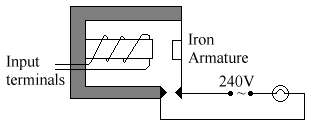 A small voltage applied to the input terminals (eg. 12V) applied to the input terminals activates the electromagnet, & closes the contacts. These contacts can then switch on larger amounts of current & voltage safely.