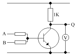 A B Q 0V 0V 9.98V 0V 10V 0.5V 10V 0V 0.5V 10V 10V 0.5V It is a NOR gate, as it gives a logic 1 when A&B are 0, & logic 0 when A or B are 1.