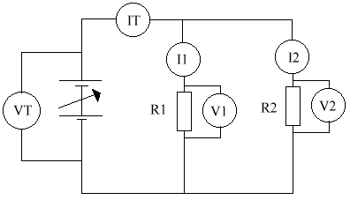 - The voltages (p.d's) are all equal ( VT = V1 = V2)